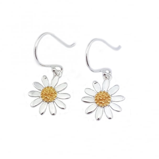 Grace & Co Silver & Gold Daisy Drop Earrings
