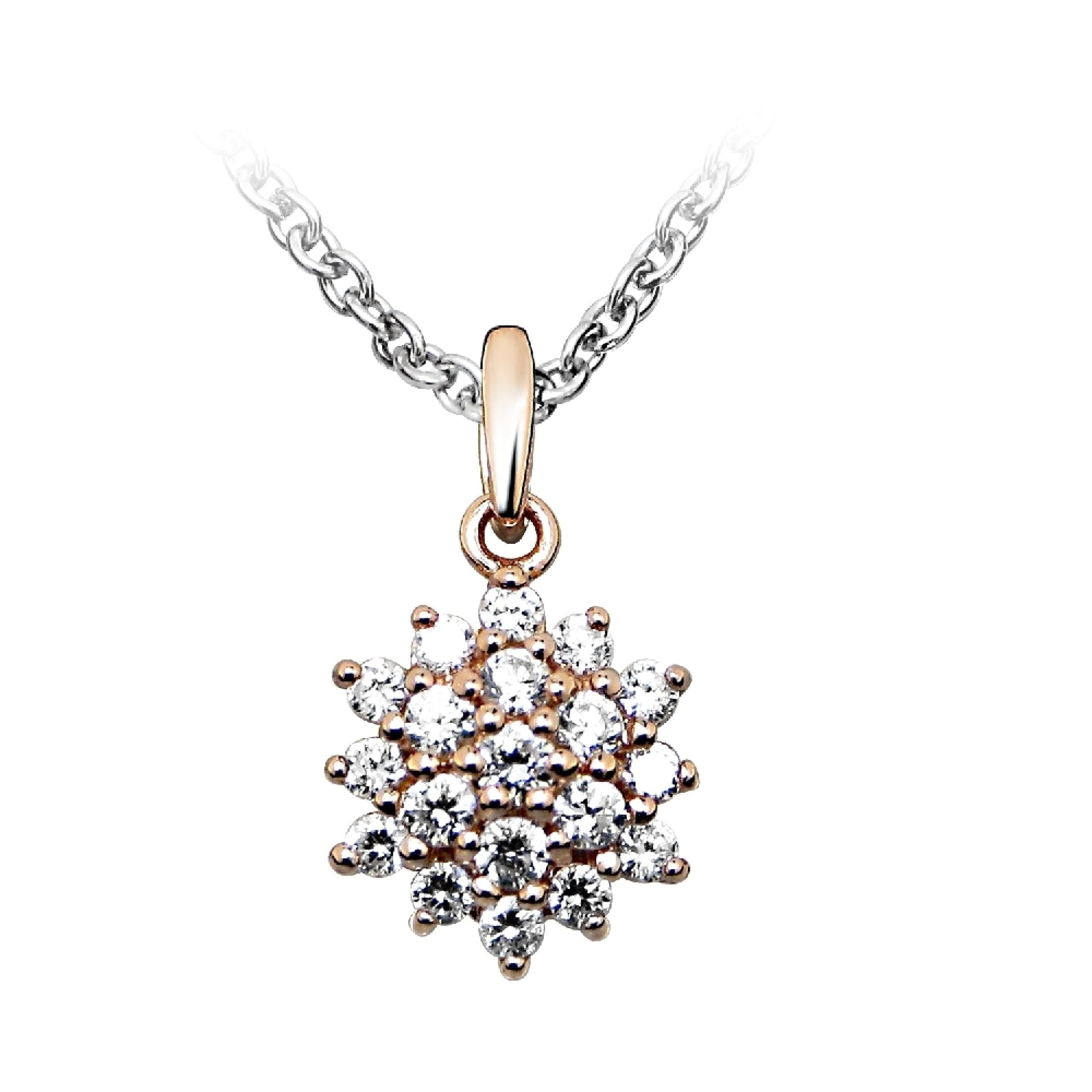 Silver, Rose Gold Vermeil & CZ Flower Pendant Necklace