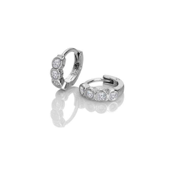 These sterling silver mini huggies are a versatile staple designed to move effortlessly from day to evening wear. Each earring features a genuine, hand-set diamond alongside brilliant White Topaz stones, providing a high-quality finish and a refined sparkle. With a width of 8mm, they offer a secure and comfortable fit close to the ear, making them perfect for individual wear or as part of a curated stack. Their expert craftsmanship and classic materials ensure these earrings remain a durable and stylish choice for any jewellery collection.