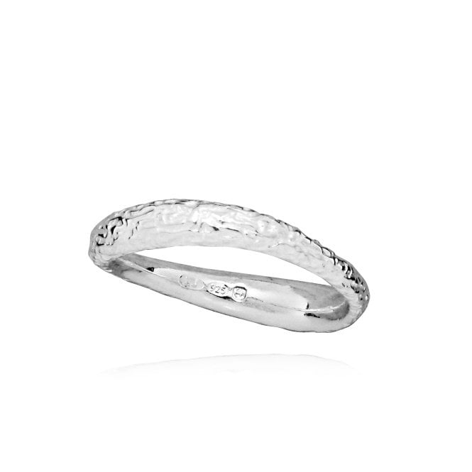 The elliptical shape of these size 49/50 Find A Way Rings represents the detours on your journey. The textured finish to the rhodium-plated sterling silver represents the various terrains you cross to make your journey. The card reads, "On your journey, you're the one people look to, to find a way through. If there's a roadblock, you'll find a way round; a wall, you'll scale it; a river, you'll build a bridge. Resourceful and unwavering, your strength and determination move mountains".