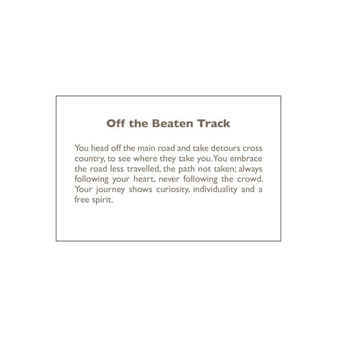 The elliptical shape of the pendant of Off The Beaten Track Double Necklace represents the detours on your journey through life. The hammered finish to the rhodium-plated sterling silver represents the uneven ground you are happy to travel across. The card reads, "You head off the main road and take detours cross country, to see where they take you. You embrace the road less travelled, the path not taken; always following your heart, never following the crowd. Your journey shows curiosity, individuality and a free spirit".