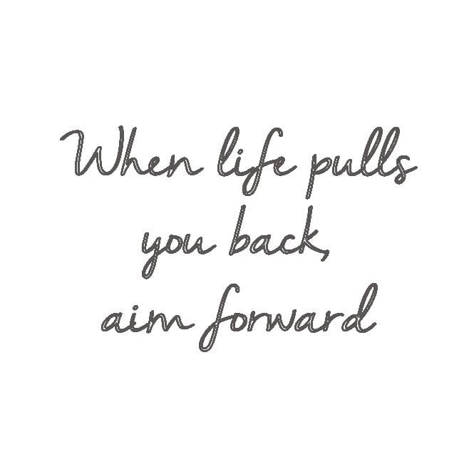 • Features the mantra; "When life pulls you back, aim forward".