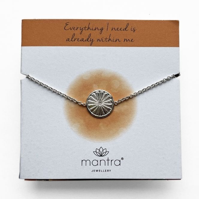 This beautiful Disc bracelet has a three-dimensional sun ray design, intended to illustrate the rays of the sun shining out from the centre of you. It represents the mantra, "Everything I need is already within me" - the design implying that the sun's rays are shining out from deep inside you. This mantra is all about self-belief and self-confidence. It is a strong and powerful reminder that we all have the qualities within us to be what we want in life. It asks us to tune into ourselves, and look deep within - because that is where we will find the belief and the confidence to take us forwards in life. We don't need to look externally for validation or approval - we can find that in ourselves. Strength, courage, trust - these can come from within. Peace of mind, calm, contentment - these are within our own grasp. We created this mantra because we all tend to look externally for answers, wanting validation, direction, or approval. But we firmly believe that the place to look is inside ourselves, not outside. A mantra is a positive phrase, intended to change our mood and our mindset. Hold onto your bracelet and repeat this empowering message to yourself when you need to boost your own self-belief, or you are looking for answers. This is one of our personalised bracelets. Your message can be engraved on the reverse of the disc.