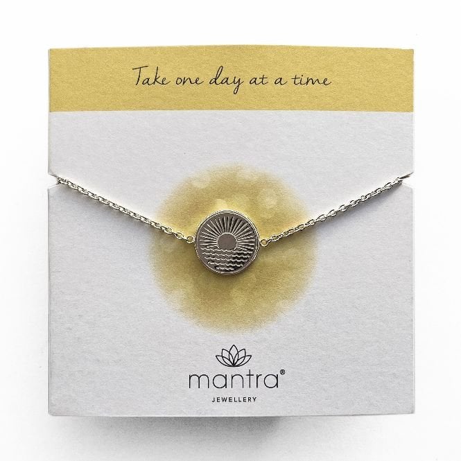 This beautiful disc bracelet shows the sun rising over the sea, as it does every day, without fail. Whatever happens in our lives, the sun always rises, heralding a new day. When life feels hard, or we have been dealt a tough hand to cope with, we all need a message of hope to keep us going. The sun rising reminds us that after the darkness comes the morning. The sunrise also brings us into the present, the here and now - the sun rising is a symbol of today. The image represents the mantra, "Take one day at a time", which reminds us to focus on the here and now, and not look into the future. This is the best way to hold onto peace of mind: because no one knows what the future holds, but we can all make the most of today. There is a phrase quoted by the legendary Dale Carnegie, in his seminal book, "How to Stop Worrying and Start Living", about living in "day-tight compartments", which I find particularly helpful. It is about finding peace of mind, by stopping yourself from fretting about the past, or worrying about the future, and focusing your attention purely on today. This bracelet helps remind you of that thought, and grounds you in the present moment. Hold onto it through the day and say the mantra to yourself as an instruction to bring you back to today.