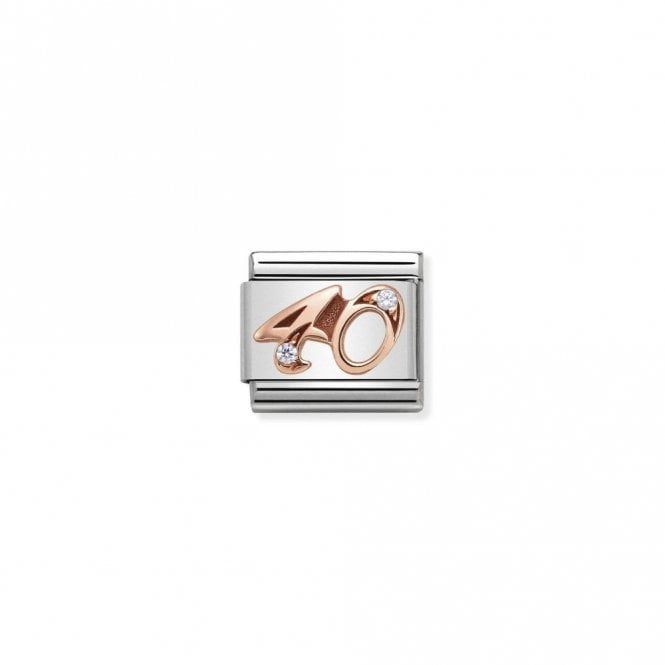 These Rose Gold CZ 40 Number Charms are from of our range of Letters & Numbers themed links which help create our large range of Nomination Rose Gold Charms that are handcrafted by Italian artisans using 9kt rose gold on a bed of stainless steel - these Composable links are designed to attach onto the Nomination Charm Bracelets, with each order accompanied by official branded packaging including a 2-year warranty.
