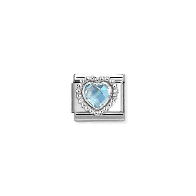 Nomination Classic Silver and CZ Light Blue Facetted Dotted Heart Sparkly & Stones Charms