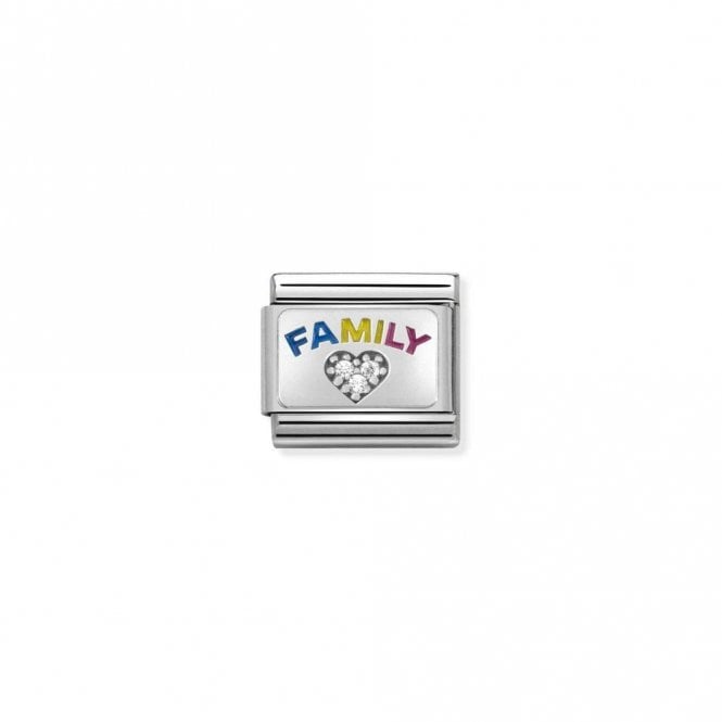 These Nomination Family With Heart Charms are from of our range of Friends & Family themed links which help create our large range of Nomination Silver Charms that are handcrafted by Italian artisans using 925 sterling silver on a bed of stainless steel - these Composable links are designed to attach onto the Nomination Charm Bracelets, with each order accompanied by official branded packaging including a 2-year warranty.