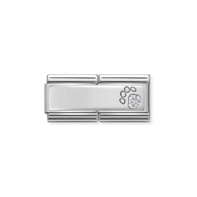 Nomination Classic Silver Double Plate Engravable Pave Paw Print Charms