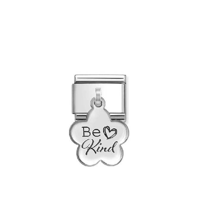 These Nomination Engraved Be Kind Flower Charms are from of our range of Flowers & Nature themed links which form our large collection of Silver Nomination Charms that are handcrafted by Italian artisans using 925 sterling silver on a bed of stainless steel - these Composable links are designed to attach onto the Nomination Charm Bracelets, with each order accompanied by official branded packaging including a 2-year warranty.