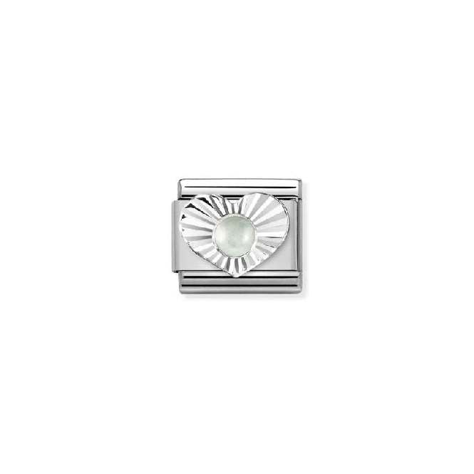 Nomination Classic Silver Milky Aquamarine Diamond Heart Sparkly & Stones Charms