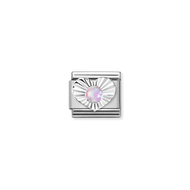 Nomination Classic Silver Pink Opal Diamond Heart Sparkly & Stones Charms