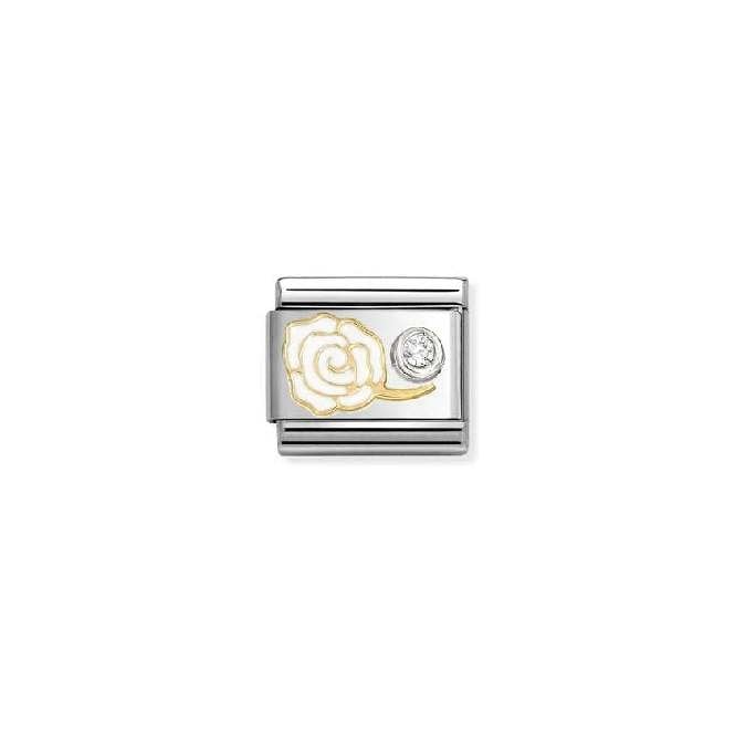 Nomination Classic Two-Tone Gold, Silver and Enamel White Rose with White CZ Flowers & Nature Charms