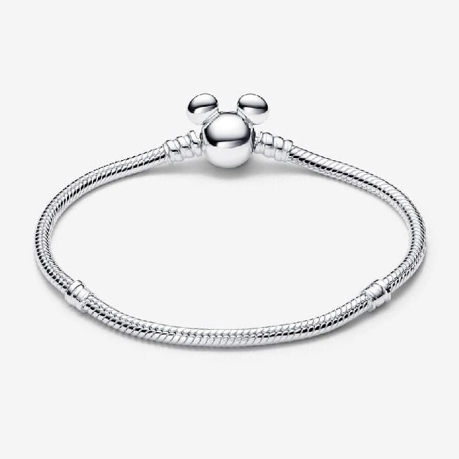 Disney Mickey Mouse Clasp Moments Snake Chain Bracelet is a stylish way to add a touch of Disney to your Pandora charm collection. Featuring a sterling silver snake chain bracelet that measures 18 cm in length, this bracelet features a clasp inspired by Mickey Mouse's iconic head silhouette and a rounded shape. By pressing Mickey's ears in opposite directions, you will be able to open and close the clasp. There are two threaders in this Pandora bracelet (raised charm dividers) and each threader can hold 16-18 pendants, dangles, or beads of various shapes and sizes. It's the perfect way to display some of your favourite Disney charms from your collection in a stylish way.