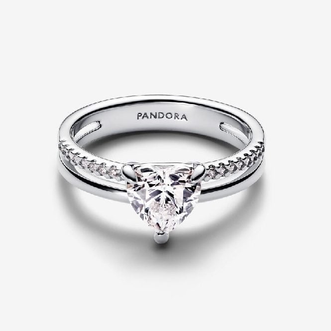Embrace the power of connection with this size 48 Double Band Heart Ring by Pandora. This elegant sterling silver ring features a heart-shaped clear-white zirconia crystal stone nestled between two bands: one polished and one encrusted with a pave adorned with 18 sparkling stones. The heart unites the two bands, symbolising the bonds that connect us. These meaningful Pandora Rings serve as a beautiful reminder of the love and relationships we cherish.