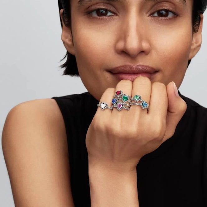 The Pandora Elevated Mint Green Heart Ring, here in a size 54, is a refreshing and sophisticated addition to any collection, featuring a central heart-shaped man-made crystal in a delicate mint green shade. This luminous stone is elevated to capture and reflect light from every angle, framed by a shimmering halo of clear cubic zirconia that enhances its soft, botanical glow.