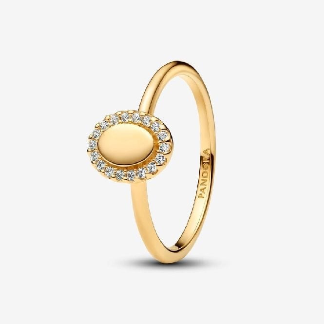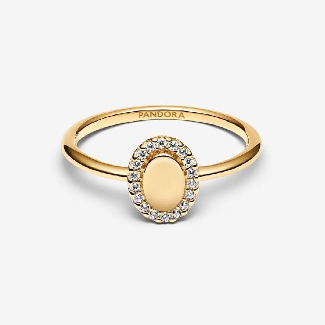 Pandora Gold Engravable Oval Halo Ring, Size 50