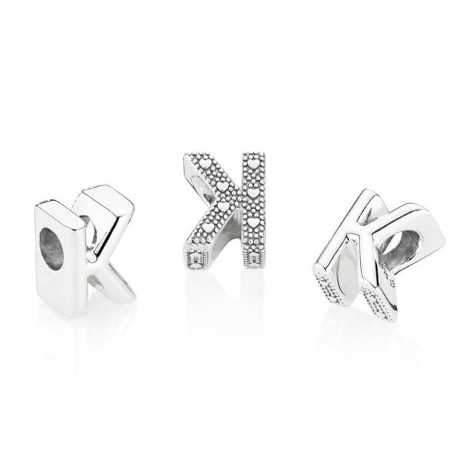 This Pandora charm which is made using 925 sterling silver is part of the Pandora ID collection.One of a series of 26 letters, this 'K' charm in 925 sterling silver is detailed with a smooth front and a patterned back. Spell out your favourite words.