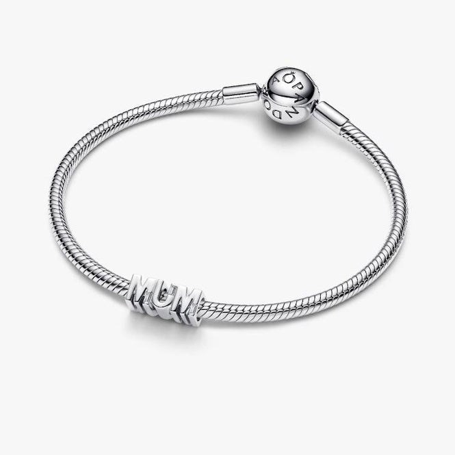 The Pandora Reversible Mum Charm is a bold and luminous celebration of motherhood, meticulously crafted from high-shine 925 sterling silver. This striking word charm features the letters ‘MUM’ in a contemporary, architectural silhouette, with each character intricately set with shimmering clear cubic zirconia that catch the light from every angle.