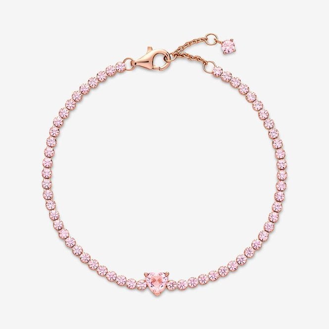 - Rose Sparkling Heart Tennis Bracelet, 13 cm.