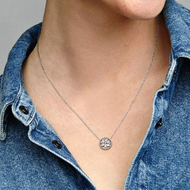Featuring a medallion-style pendant that features a stone-embellished family tree, this Pandora necklace measures 45 cm in length and is strung on an adjustable chain with a sliding clasp that makes it easy to adjust to your perfect fit. You can wear the symbolic piece as a lasting tribute to the bonds between family members.