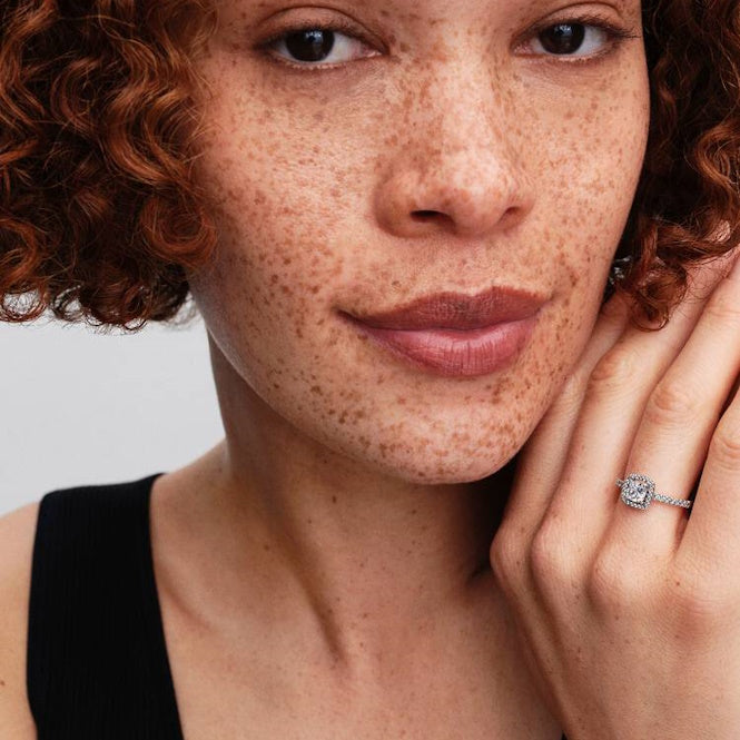 Celebrate your inner radiance with the Sparkling Square Halo Ring, here in a size 52. Handcrafted from polished sterling silver, this stunning Pandora ring features a brilliant, cushion-cut, squared zirconia crystal stone as the centrepiece. This main stone is dramatically framed by a halo of glittering pave-set zirconias, creating a timeless design specifically engineered to refract the light and enhance your own natural shine.