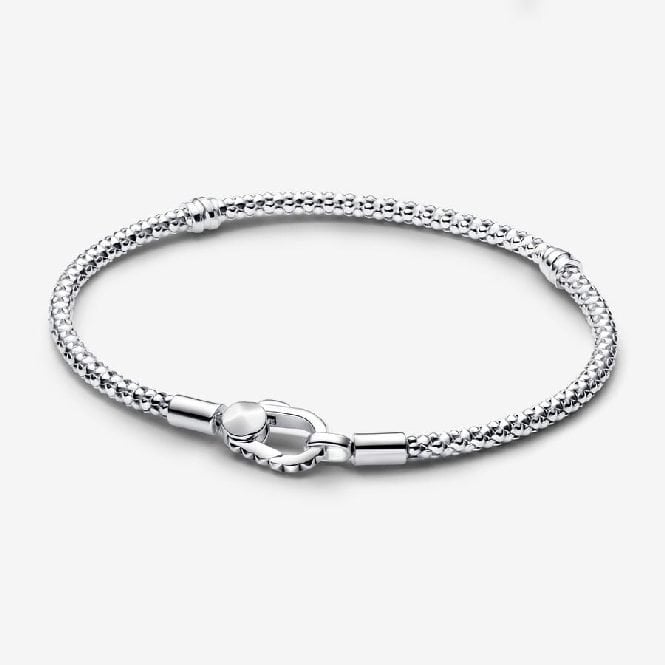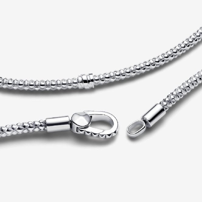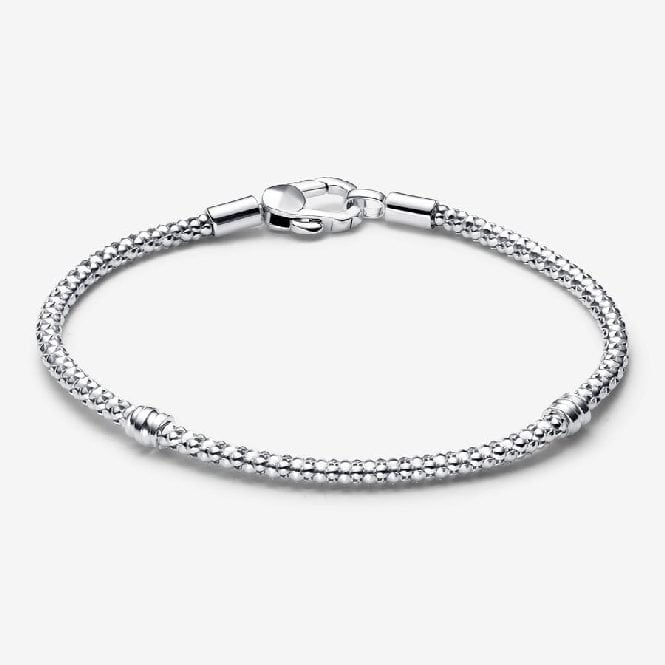 Elevate your wristwear with this 17 cm length Studded Clasp & Chain Bracelet by Pandora. This sterling silver bracelet features a unique textured design that adds depth and dimension to your style. The secure carabiner-style clasp ensures your charms stay safely in place. Wear it on its own for a subtle statement or personalise it with your favourite charms for a look that's uniquely you.