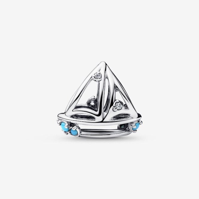 Chart your own course with the Sailboat Charm by Pandora. If you're someone who loves playful and unique jewellery and embraces a free-spirited outlook, this sailboat charm is the perfect way to express yourself. This charming piece is inspired by the spirit of adventure and navigating life's journey. It features a detailed sailboat design crafted in sterling silver, our signature metal known for its lovely bright finish. Sparkling zirconia stones add a splash of brilliance, like sunlight on the water, while a durable imitation crystal adds an extra element of charm.