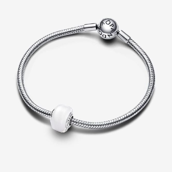 Add some vibrant colour to your charm bracelet with one of these White Mini Murano Glass Charms from Pandora. This charm bead design has been refined to a smaller size than our other Murano charms and a slightly squared shape. This creates more versatile ways to play with colour and dimension in your charm line-up. It fits any Moments charm holder and is made of sterling silver. Pair this bright white bead with your favourite sterling silver Pandora charms or get creative and mix the same style with other colours.