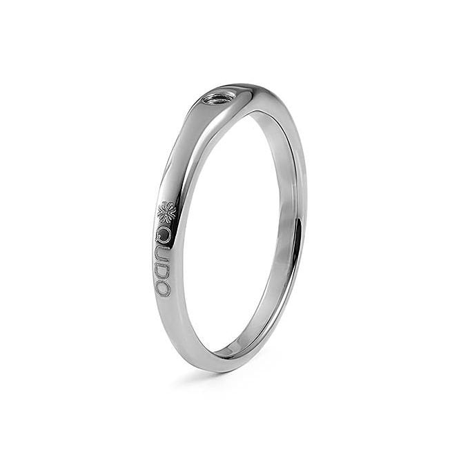 A highly-polished extra-slim interchangeable ring in a size 52. You can screw any Qudo Ring Gem Top to this band by simply threading it into the opening.