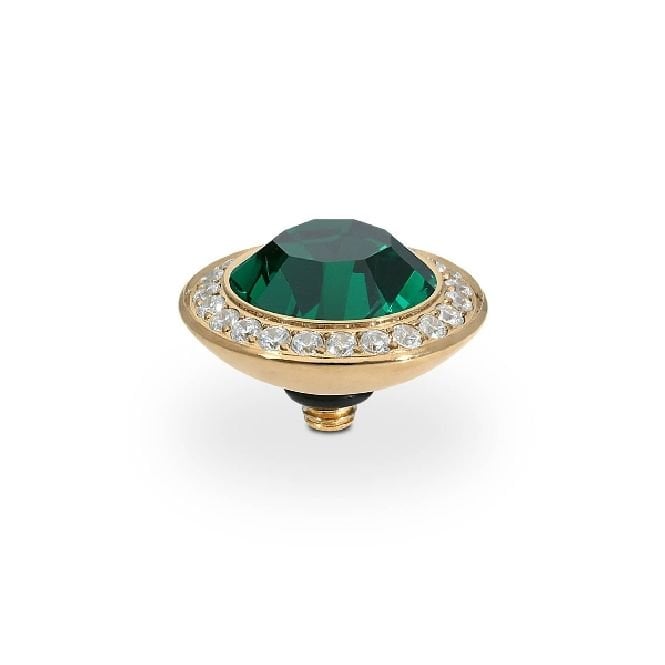 Qudo Tondo Deluxe Gold and Green Emerald Ring Gem Top, 13mm
