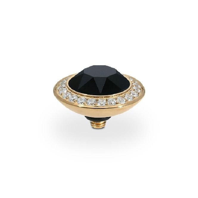 Qudo Tondo Deluxe Gold and Jet Crystal Ring Gem Top, 13mm