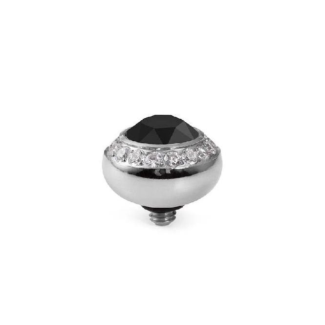 Qudo Tondo Deluxe Silver and Jet Black Crystal Ring Gem Top, 10mm