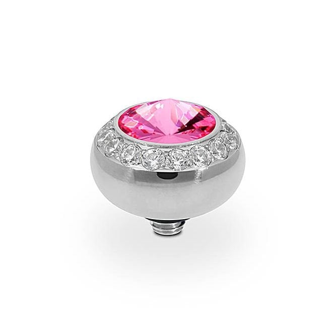 Qudo Tondo Deluxe Silver and Rose Pink Crystal Ring Gem Top, 10mm