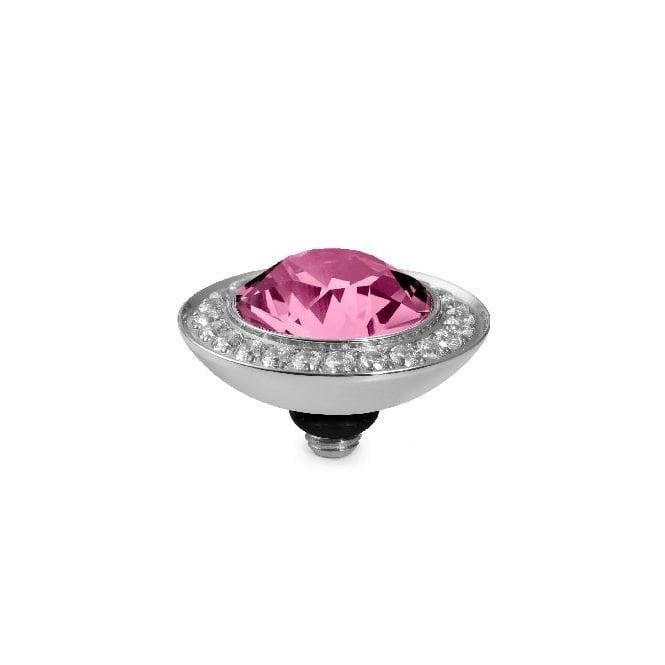 Qudo Tondo Deluxe Silver and Rose Pink Crystal Ring Gem Top, 13mm