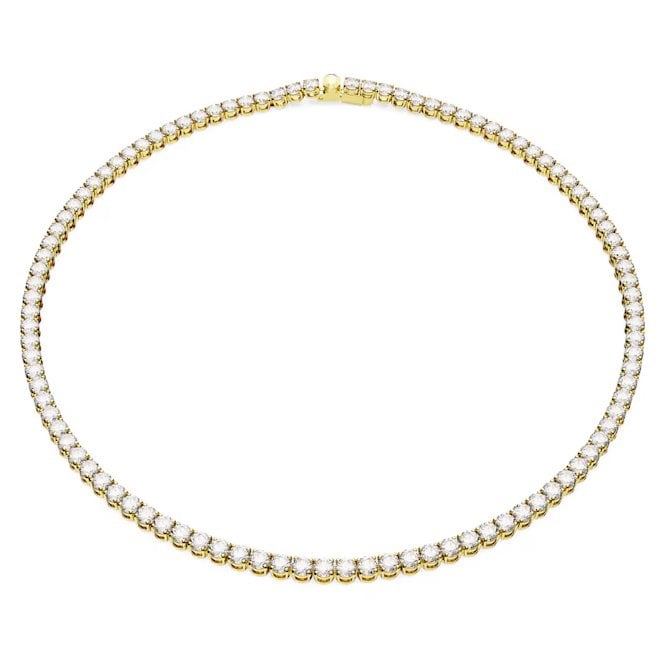 Swarovski Matrix Tennis Necklace with Round-Cut White Crystal in Gold