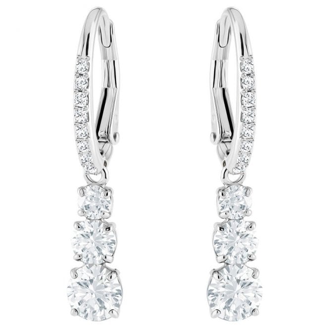 Swarovski Stilla Attract Trilogy White Crystal Round Earrings in Rhodium Silver